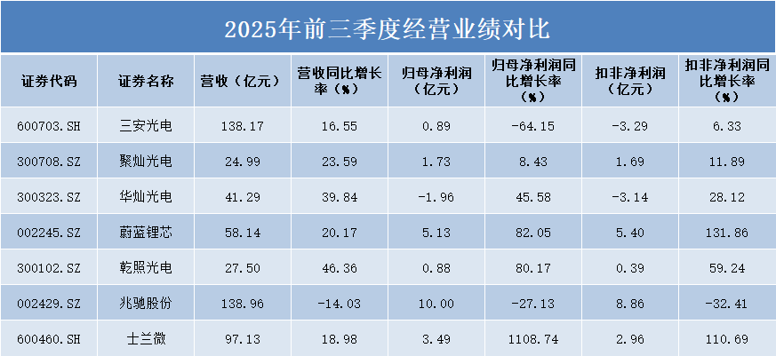 Q3:乾照光電增長強勁,兆馳股份大幅下滑