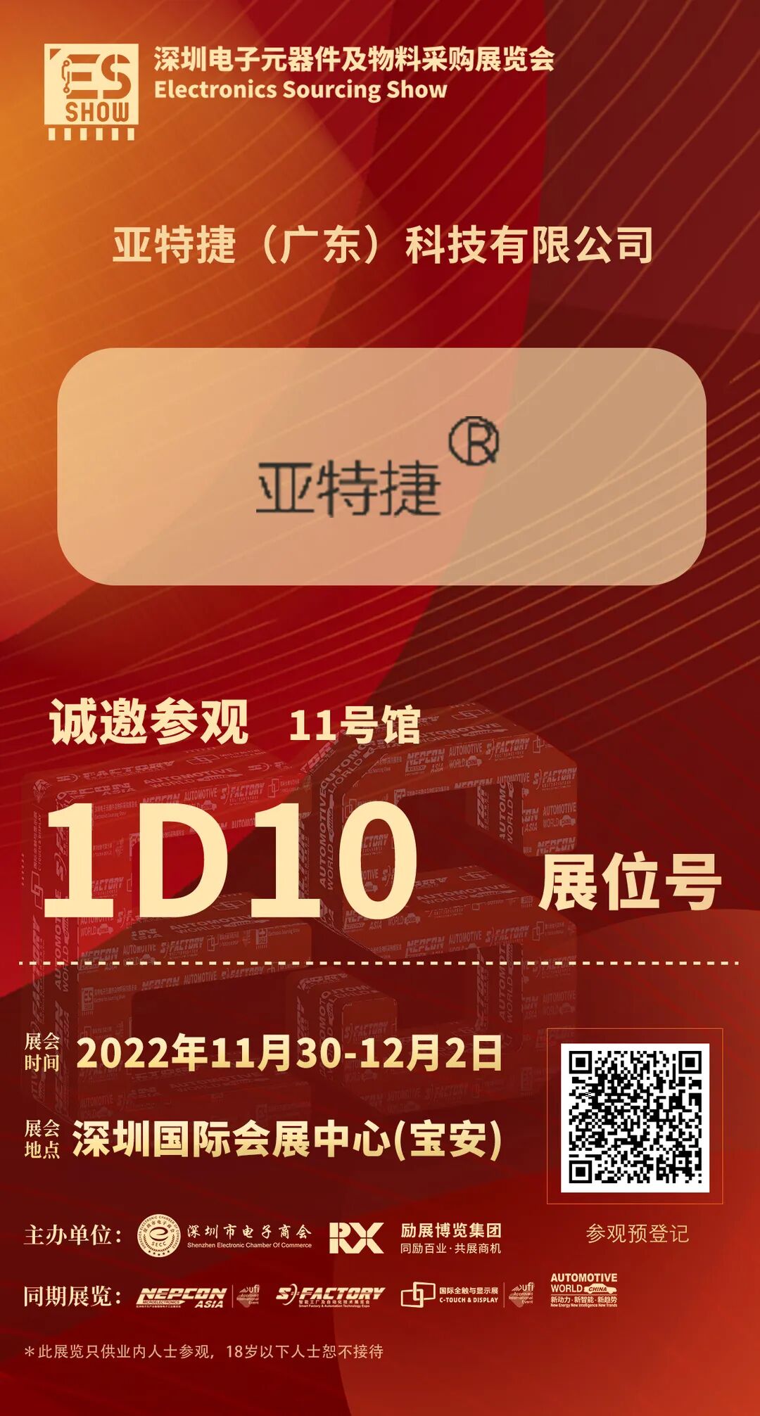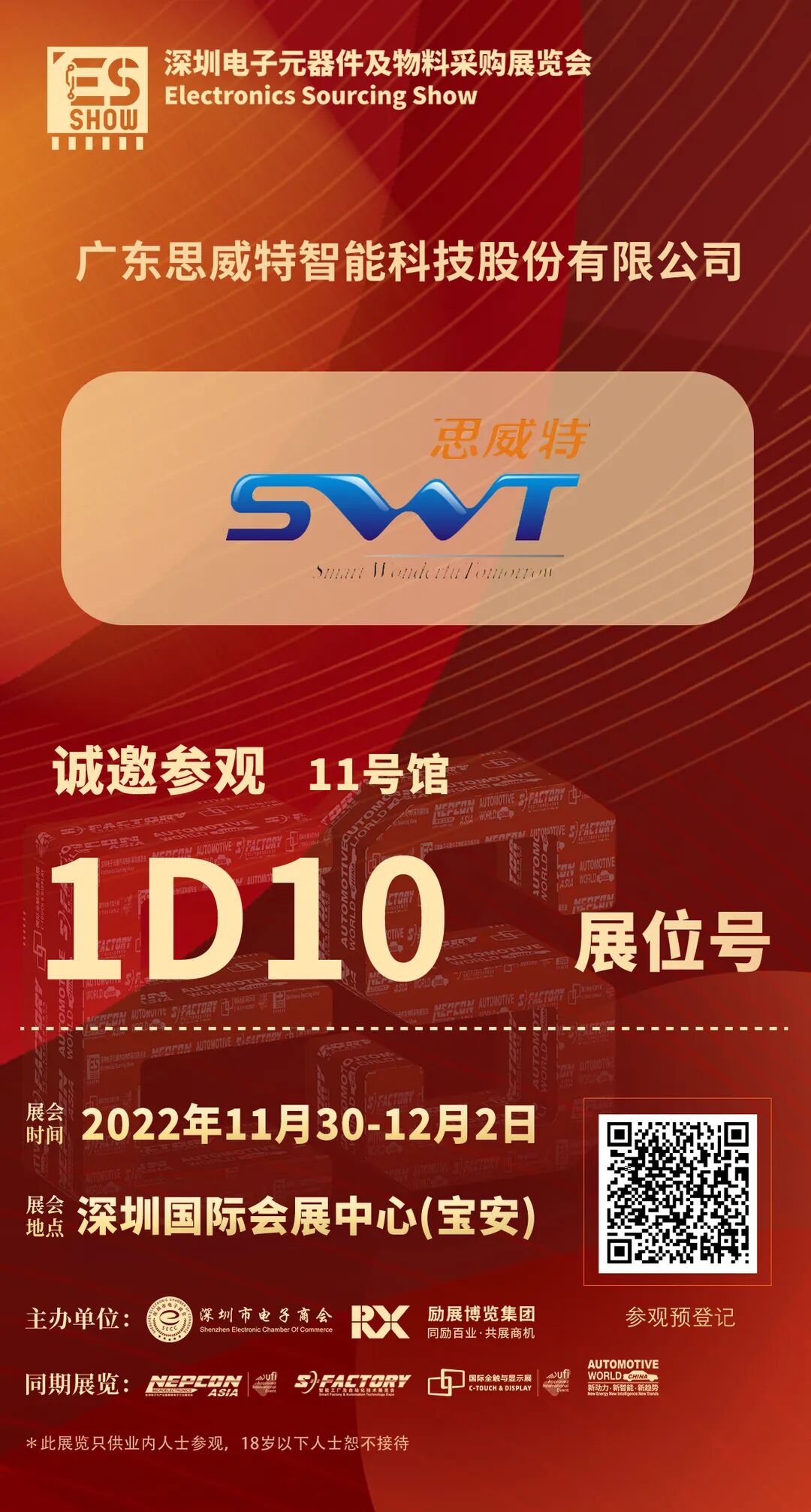 2022 深圳電子元器件及物料采購展覽會,將于11月30-12月2日在深圳國際會展中心(寶安)閃亮登場,隆重開幕。11號館1D10 展位,東莞展團參展商們誠邀您參加,趕緊收下此邀請函,碼上登記,我們不見不散!