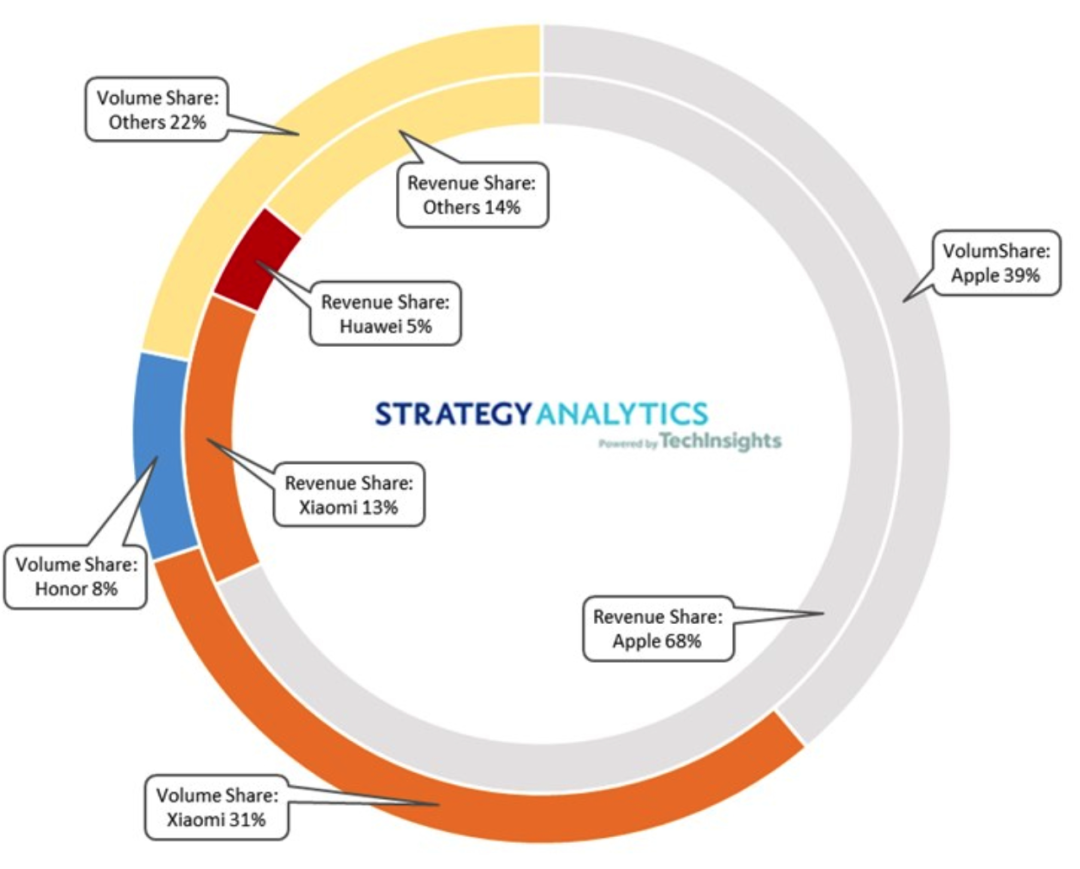 這不,按照Strategy Analytics的數據,我們可以計算對比一番了,看看究竟是誰最牛。