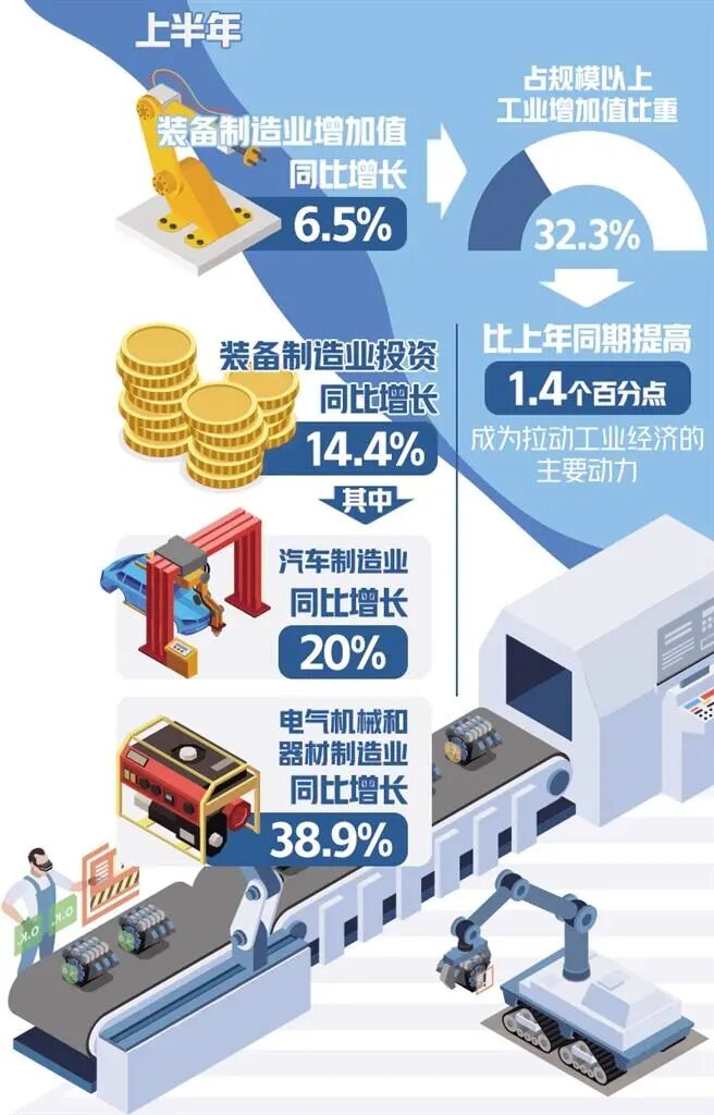 上半年裝備制造業(yè)增加值同比增長(zhǎng)6.5%!新動(dòng)能挑起工業(yè)經(jīng)濟(jì)“大梁”