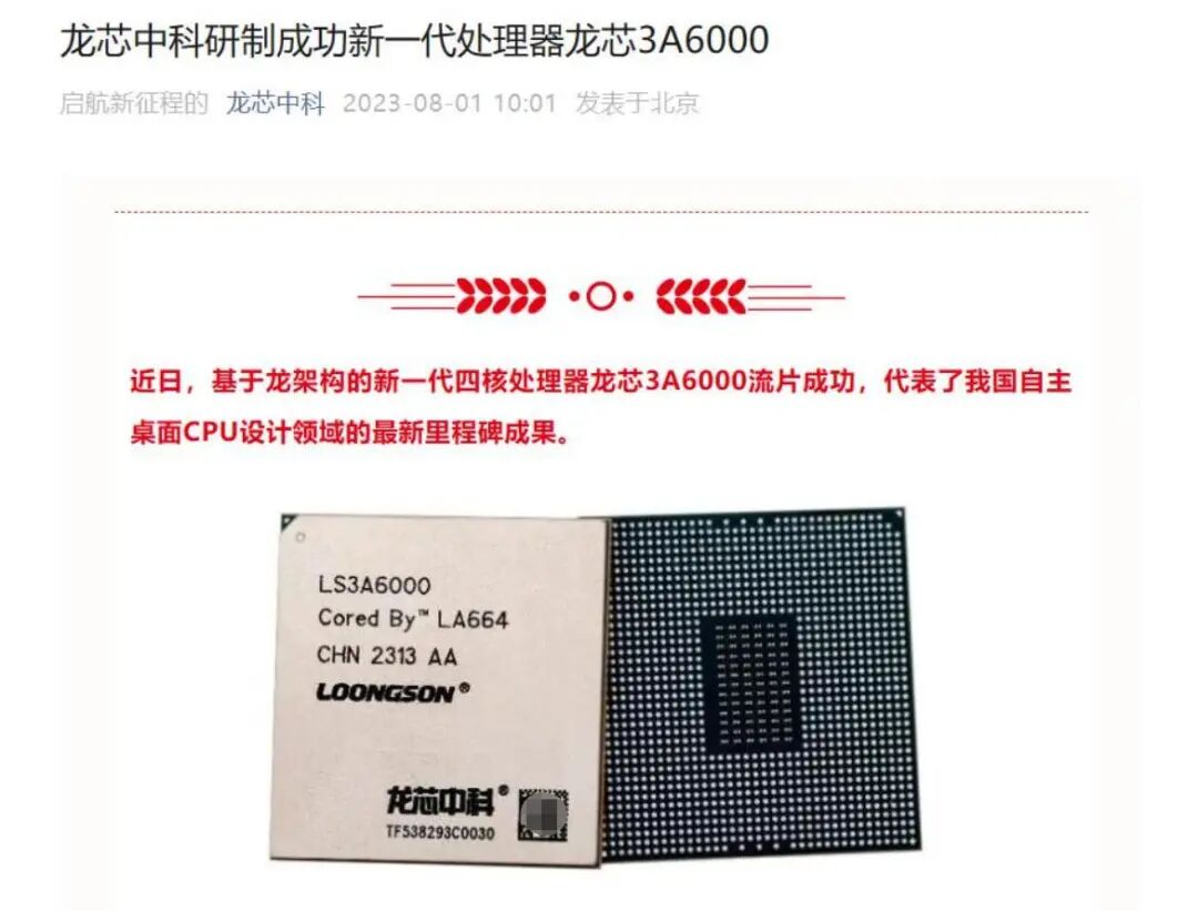 最新的龍芯3A6000系列,采用LoongArch指令集,已經流片成功,按照報道樂,根據測試結果,這款CPU與2020年推出的第10代酷睿四核處理器相當,算下來,差不多就是落后3年了。